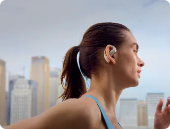 OpenFit 2: queste cuffie utilizzano un gancio auricolare flessibile ed ergonomico realizzato in materiale in lega di titanio ultrasottile. Si adatta perfettamente ai contorni dell'orecchio, garantendo una vestibilità comoda e adattandosi a diverse forme di orecchie. Questo nuovo design ottimizzato del gancio auricolare si basa sulle proprietà della "sezione aurea", migliorando la distribuzione del peso, aumentando la stabilità ed evitando che gli auricolari si spostino.