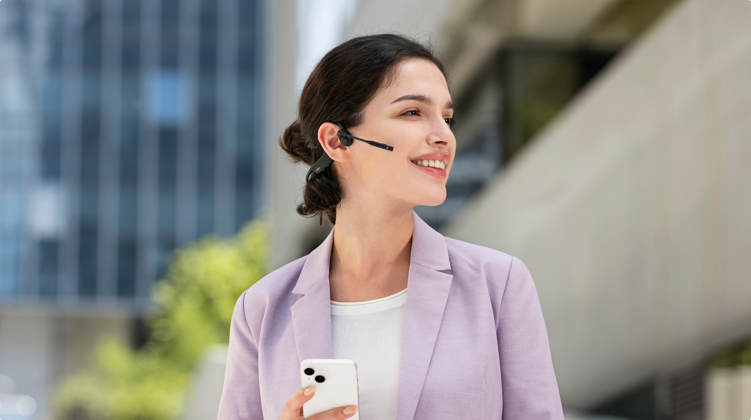 A diferencia de los auriculares tradicionales que cubren tus oídos y te aíslan de tu entorno, el diseño open-ear de los OpenComm2 te mantiene conectado con el mundo sin comprometer la comodidad ni la calidad del audio.