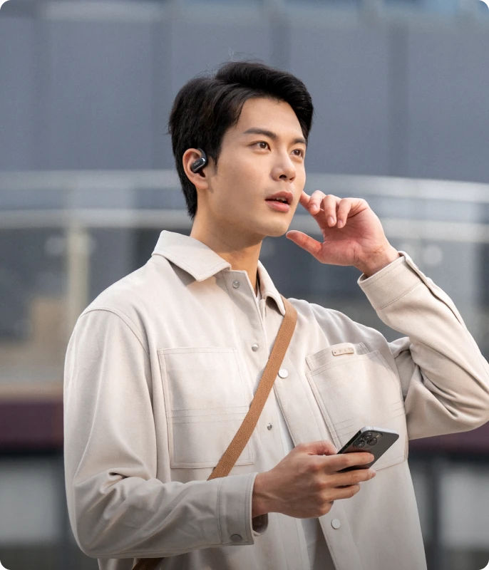 2. Quando utilizzi gli auricolari durante le attività all'aperto, assicurati di indossarli correttamente e di controllare il volume per avere la certezza di sentire i rumori dell'ambiente circostante, inclusi i segnali stradali, i passanti, ecc. L'uso di OpenFit Air durante la guida può distrarre e comportare un rischio maggiore di infortuni sportivi e incidenti stradali, l'uso di OpenFit Air durante la guida potrebbe violare le leggi locali o i regolamenti comunitari, l'uso di questo prodotto dovrà essere conforme alle leggi locali e ai regolamenti comunitari.