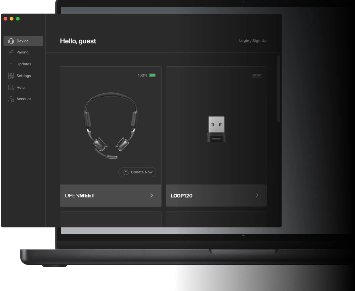 Con el adaptador Loop120, los OpenMeet te ofrecen facilidad de uso. Disfruta de la compatibilidad con Windows 8+ y macOS 10.15+ con una conexión inalámbrica más estable que el emparejamiento Bluetooth directo, lo que garantiza una productividad ininterrumpida.