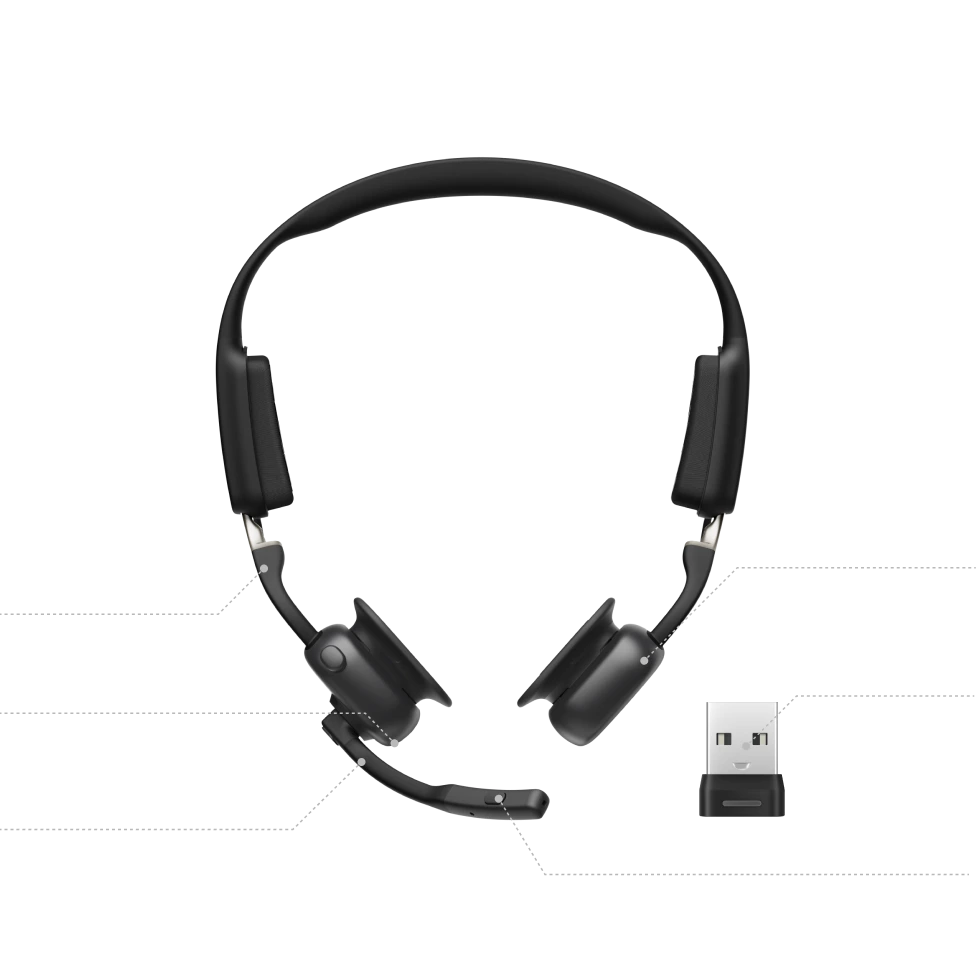 El diseño open-ear exclusivo de Shokz te permite mantener la conexión con tu trabajo y con tu entorno, desde tus compañeros hasta los ruidos del hogar.