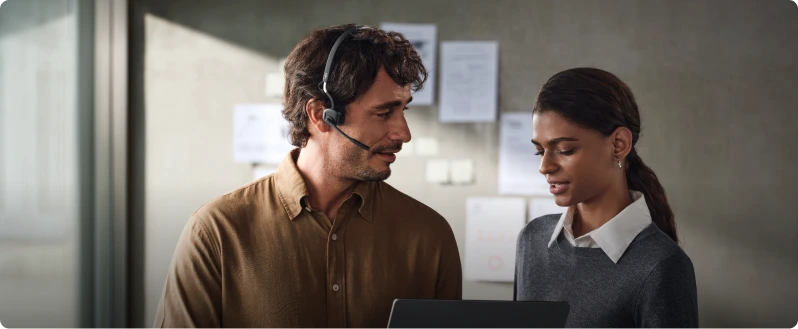 cuentan con un botón de llamada independiente para responder y finalizar llamadas, completamente independiente de los controles de reproducción de audio. Minimiza la interferencia y garantiza transiciones suaves entre escuchar música y administrar tus llamadas, lo que mejora la eficiencia en el lugar de trabajo.