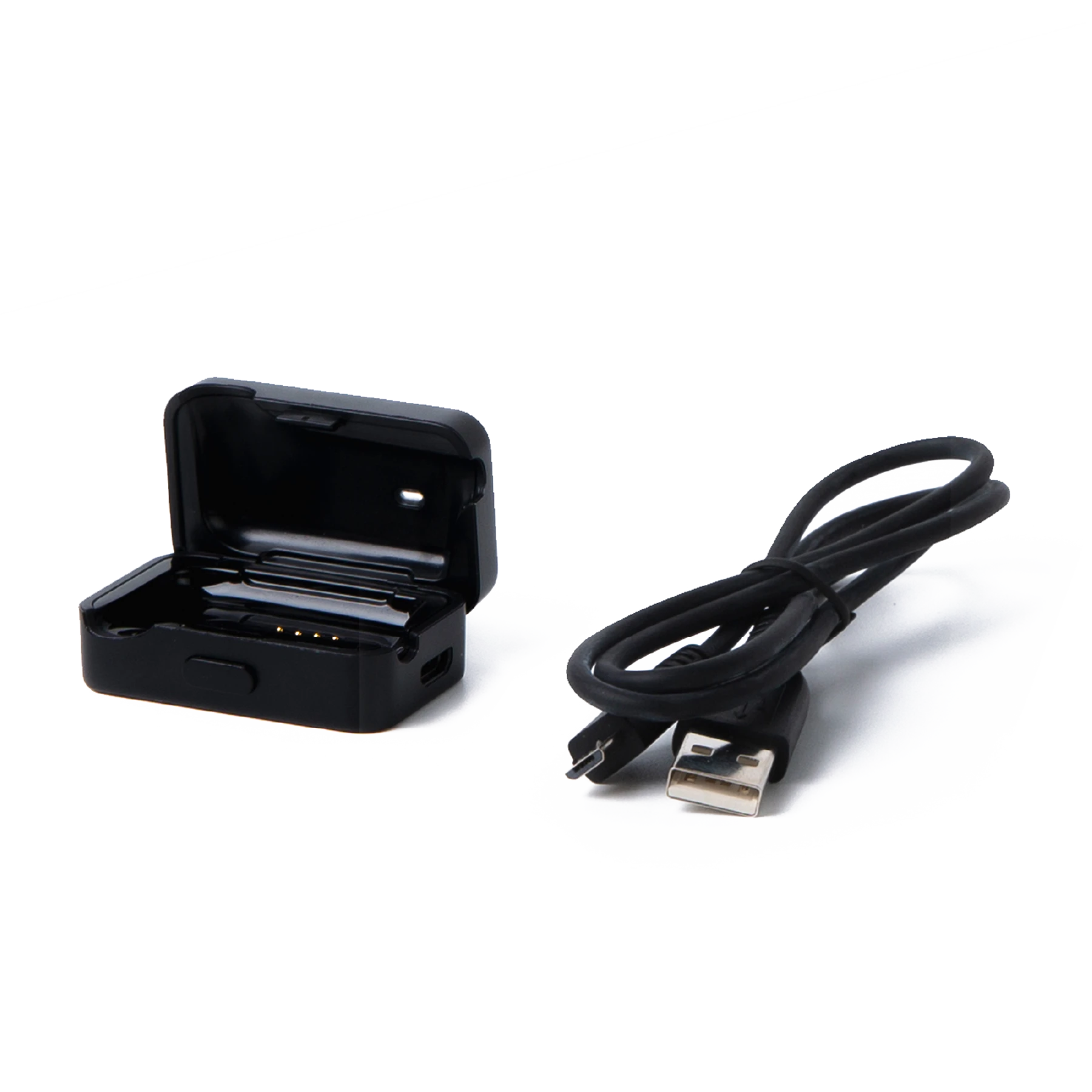 Conecta los OPENSWIM (XTRAINEZ) al soporte de carga USB. Conecta la base de carga USB al ordenador o a un cargador de pared USB. El indicador LED se ilumina cuando se inicia la carga y se vuelve azul cuando se ha completado la carga.