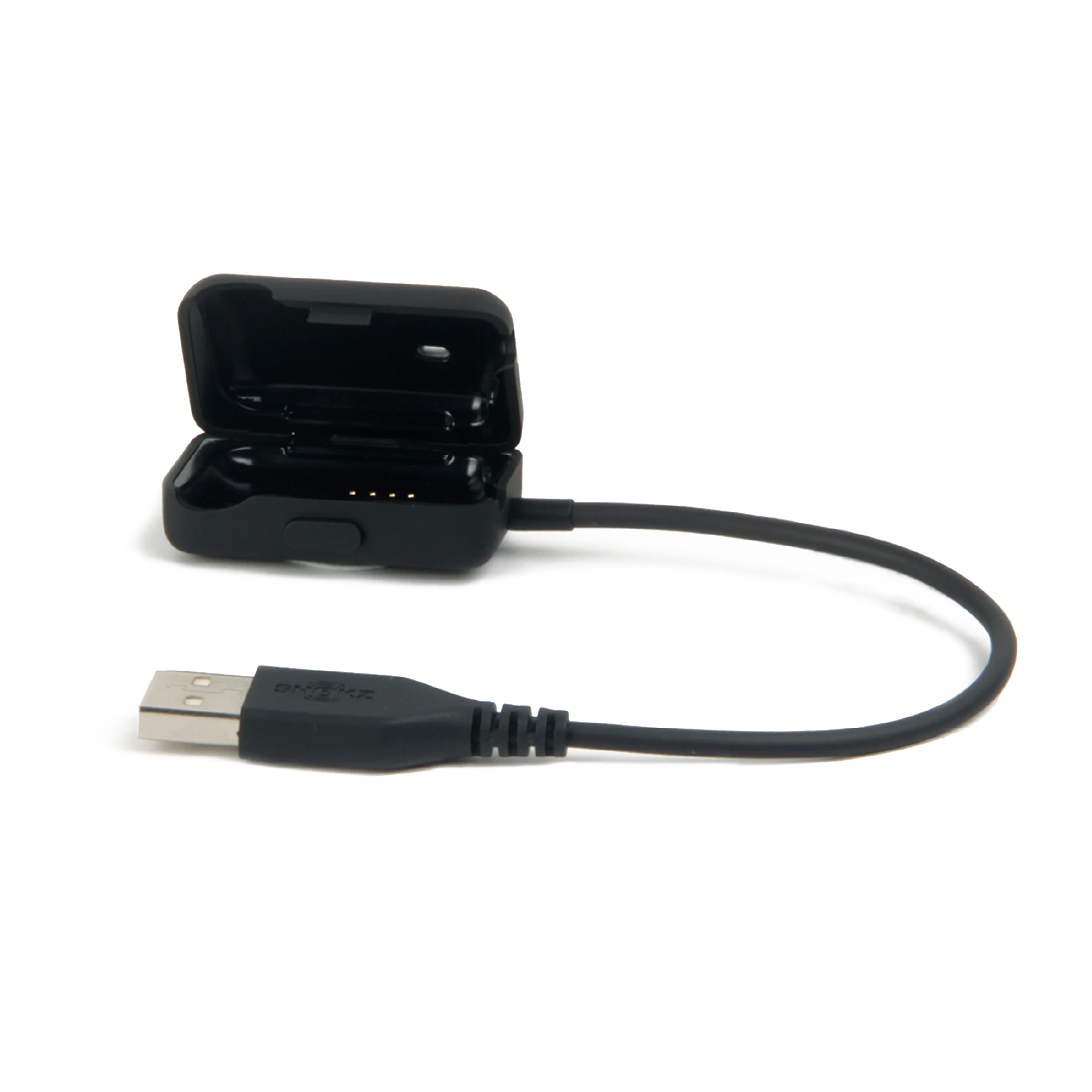 B. Debes conectar los OPENSWIM (XTRAINEZ) al soporte de carga USB. Debes asegúrate de que los pines Pogo de los auriculares OpenSwim (antiguamente Xtrainerz) y los terminales del soporte de carga USB estén bien conectados.