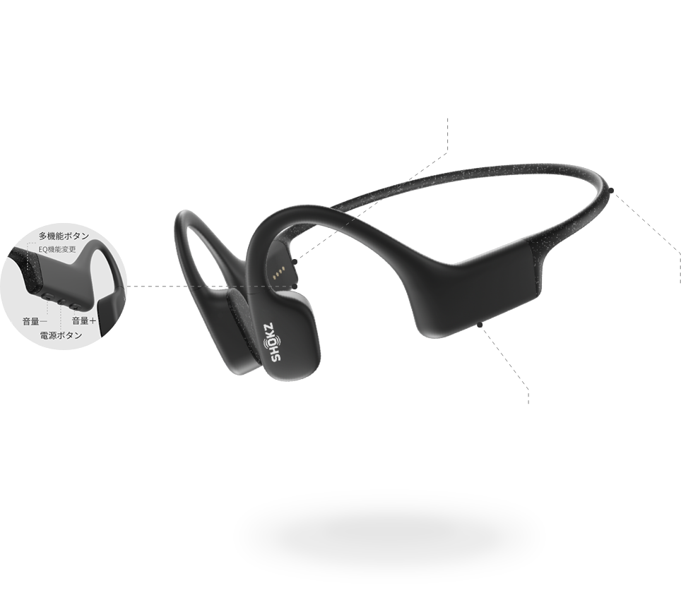 当社の骨伝導技術を採用したオープンイヤーデザインにより、水の中でも外でも、イヤーパッドなしで1日中快適なリスニングを楽しむことができます。